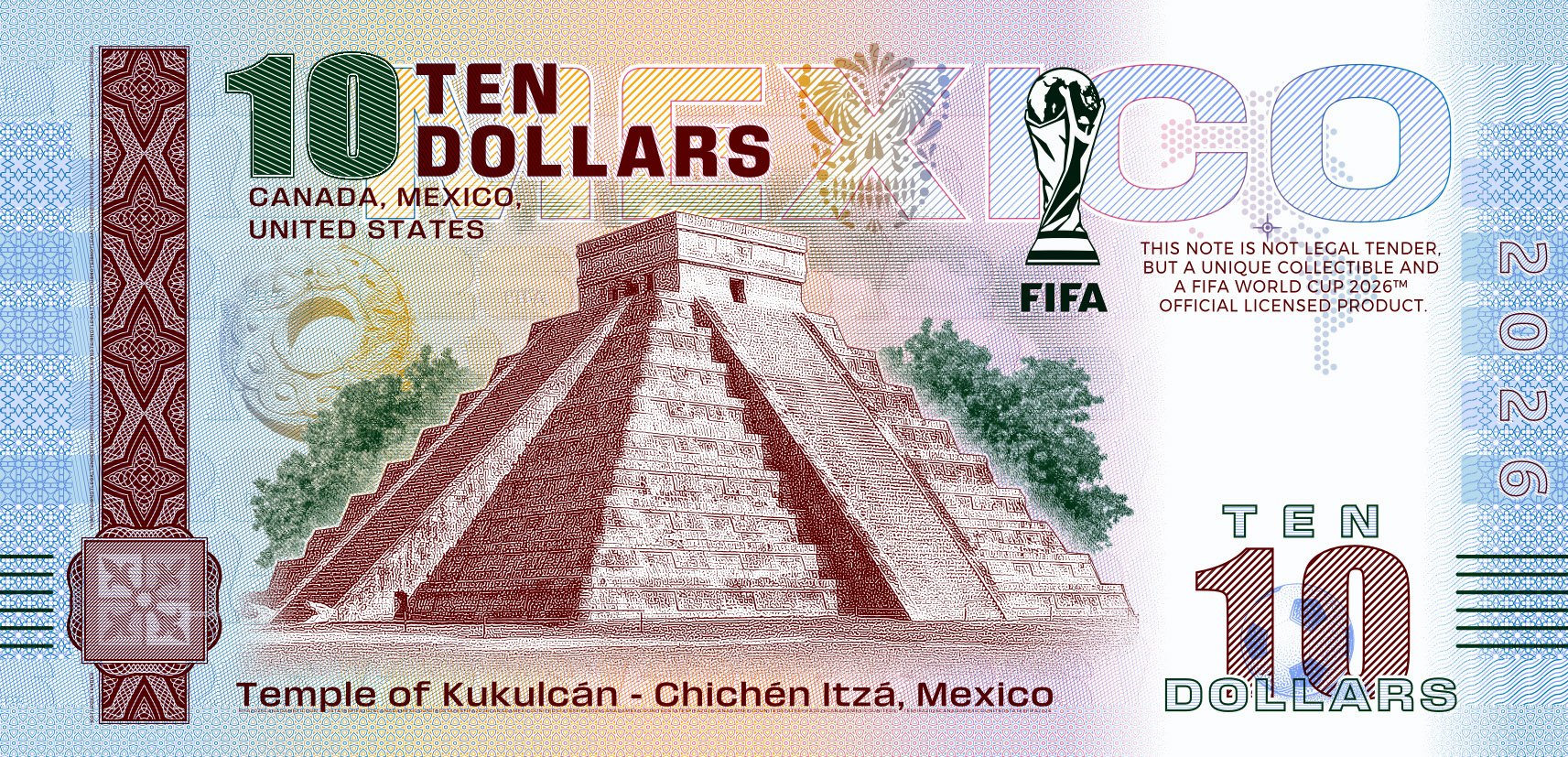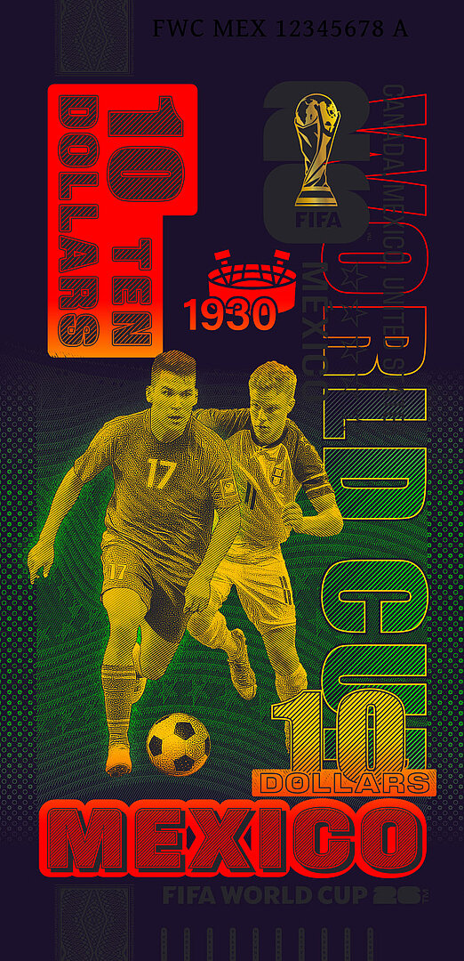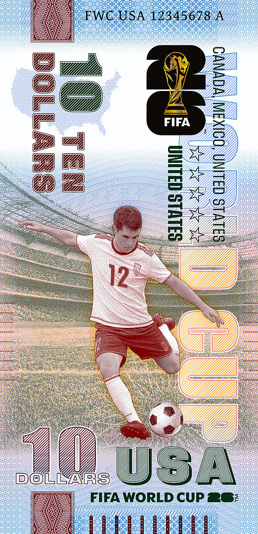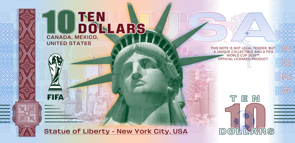 On the occasion of the World Cup in the USA, Canada, and Mexico—the first World Cup to be held in three countries—we have designed a unique series of souvenir notes that are officially licensed by FIFA™.