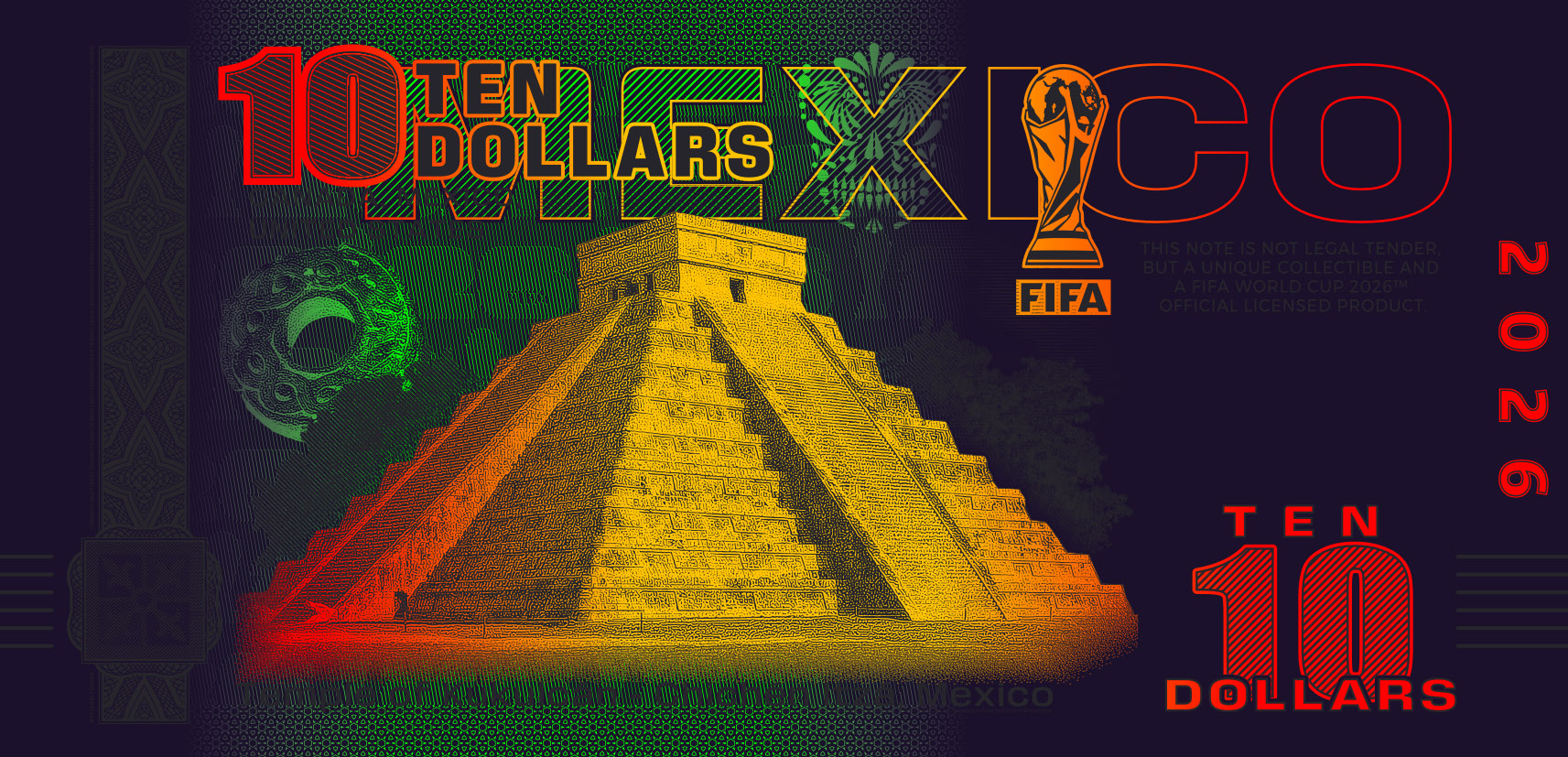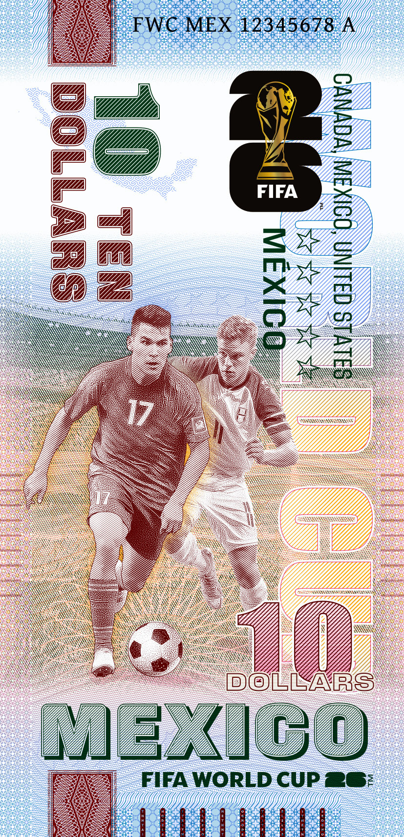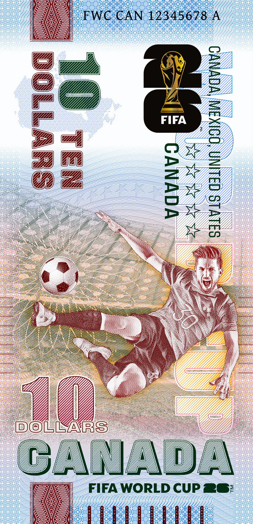 On the occasion of the World Cup in the USA, Canada, and Mexico—the first World Cup to be held in three countries—we have designed a unique series of souvenir notes that are officially licensed by FIFA™.