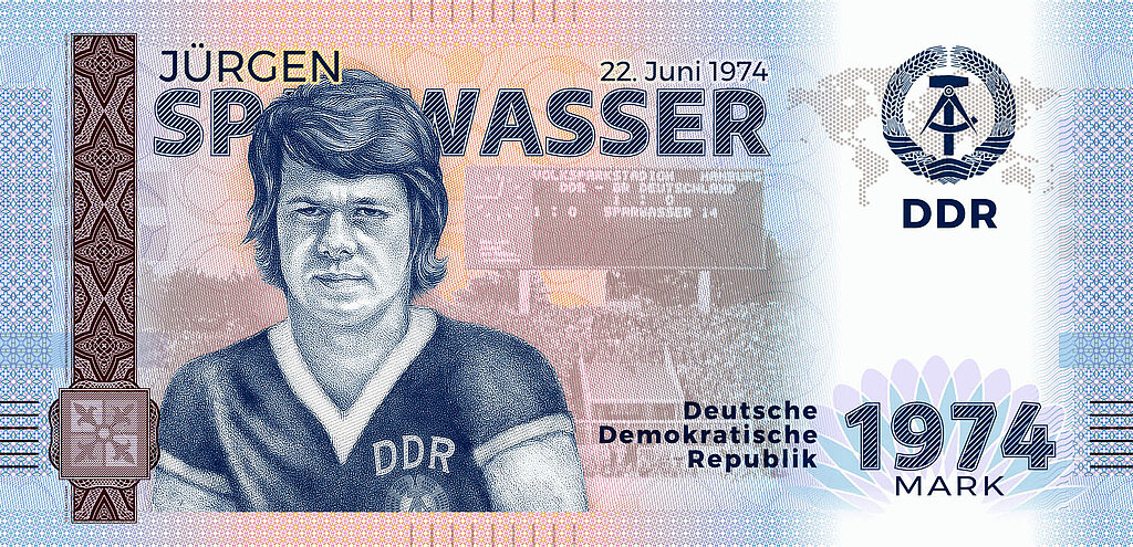 We have also created a souvenir note for football legend Jürgen Sparwasser. The obverse of the note features the genuine signature of the GDR's top goal scorer.