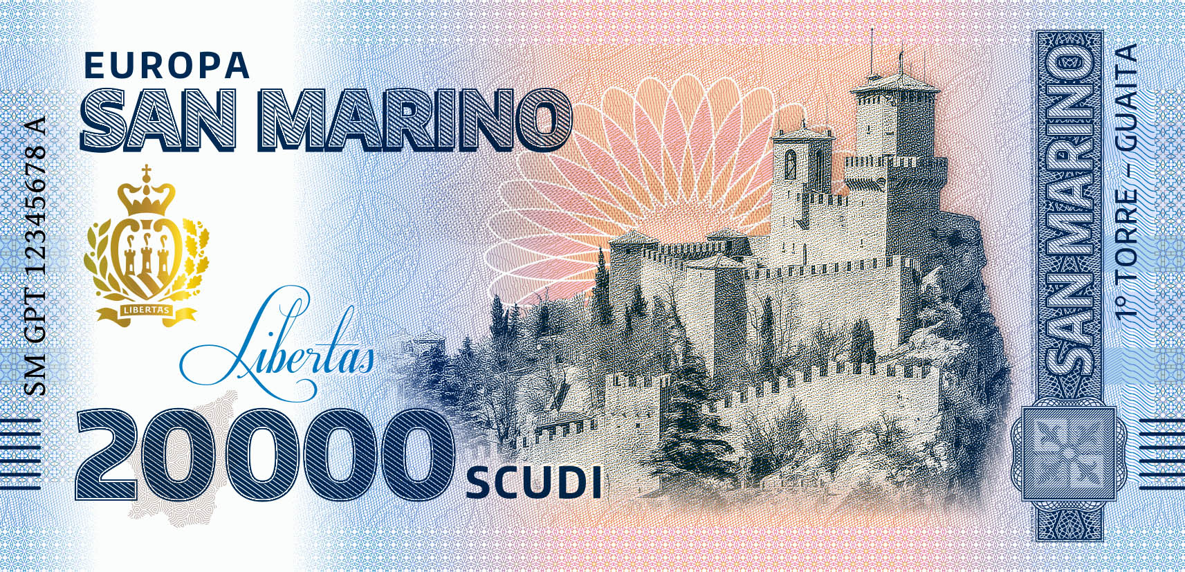 In cooperation with Poste San Marino, we have developed an eight-part series on the most important buildings and sights of San Marino with an official license. The notes feature the national coat of arms of the Republic.